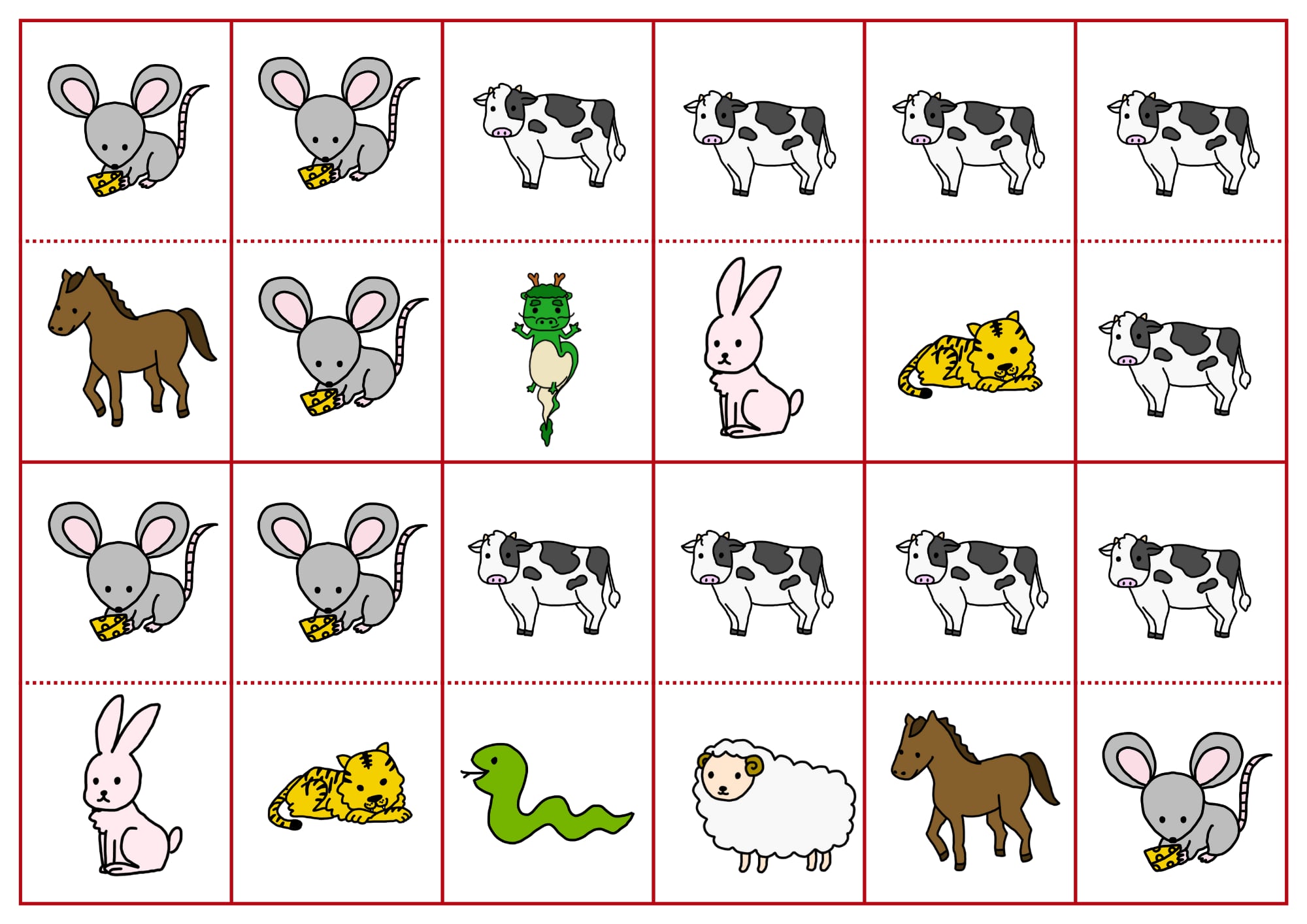・干支シルエット→神経衰弱にして遊びながら覚える!