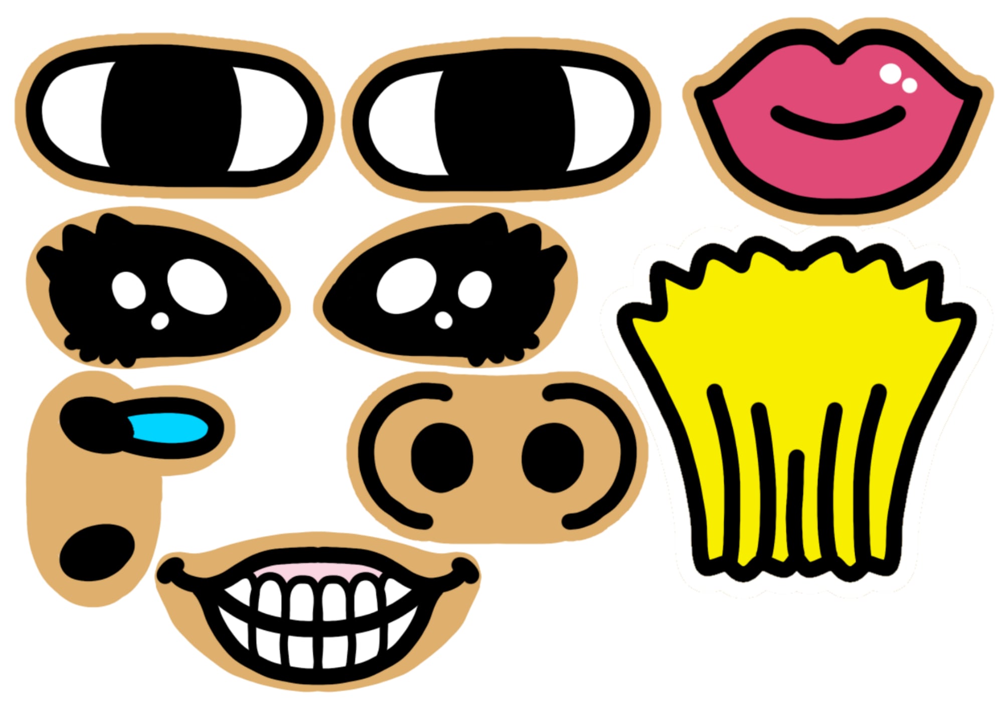 ・馬の福笑い→ face parts(eyes / nose / mouth など)を楽しく定着