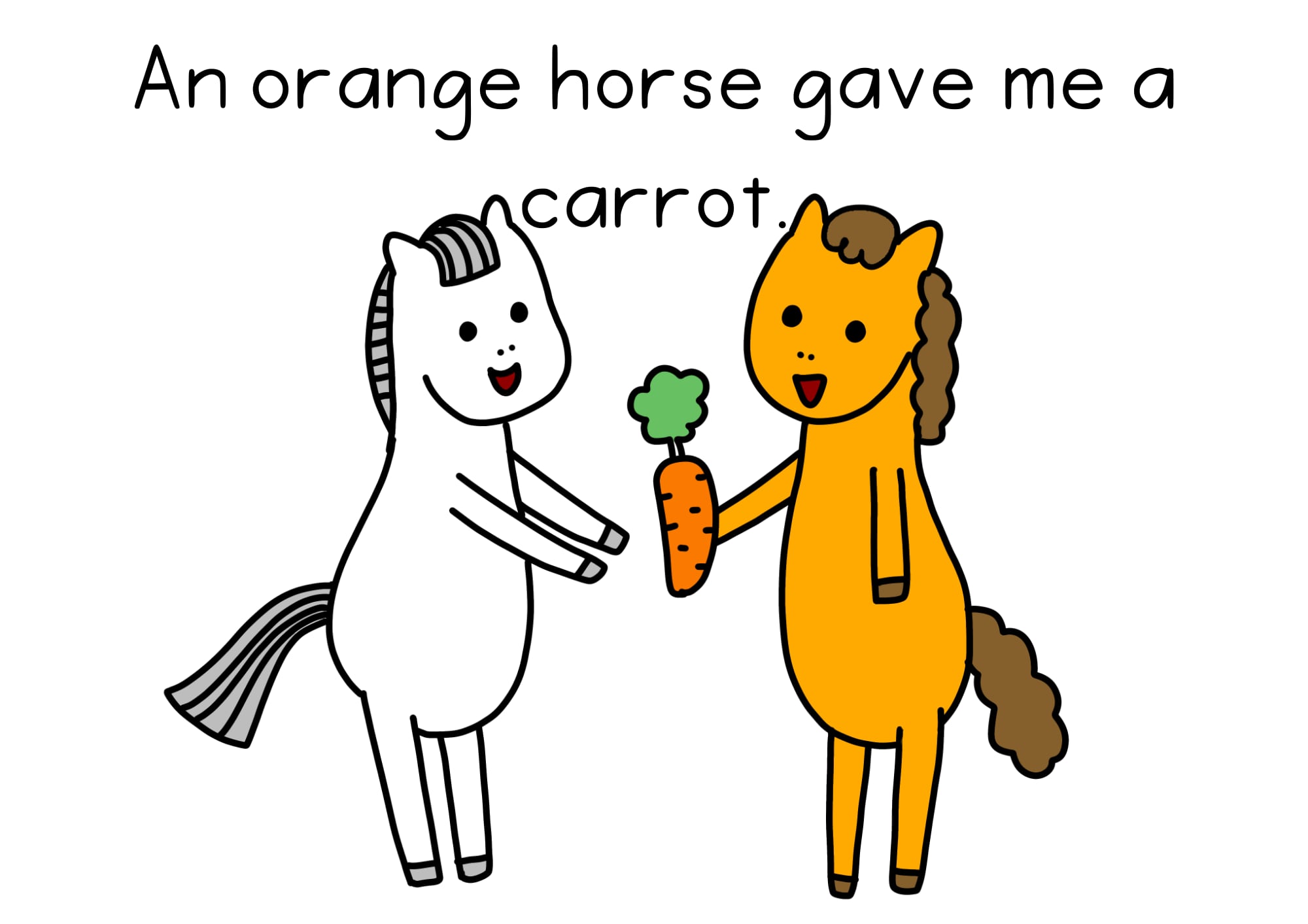 ・紙芝居 A very hungry horse → food & colors をストーリーでインプット