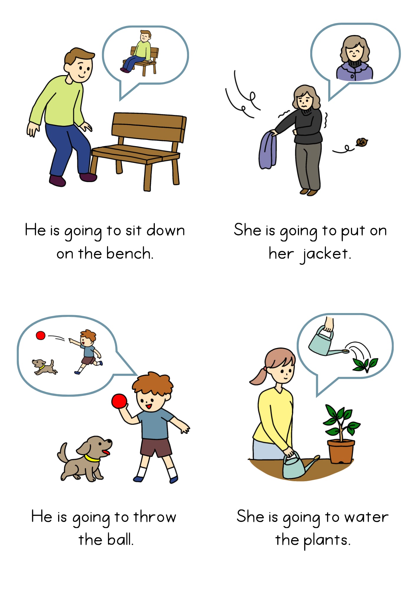 これから起こること・予定・予想を英語で表現する練習用カード。