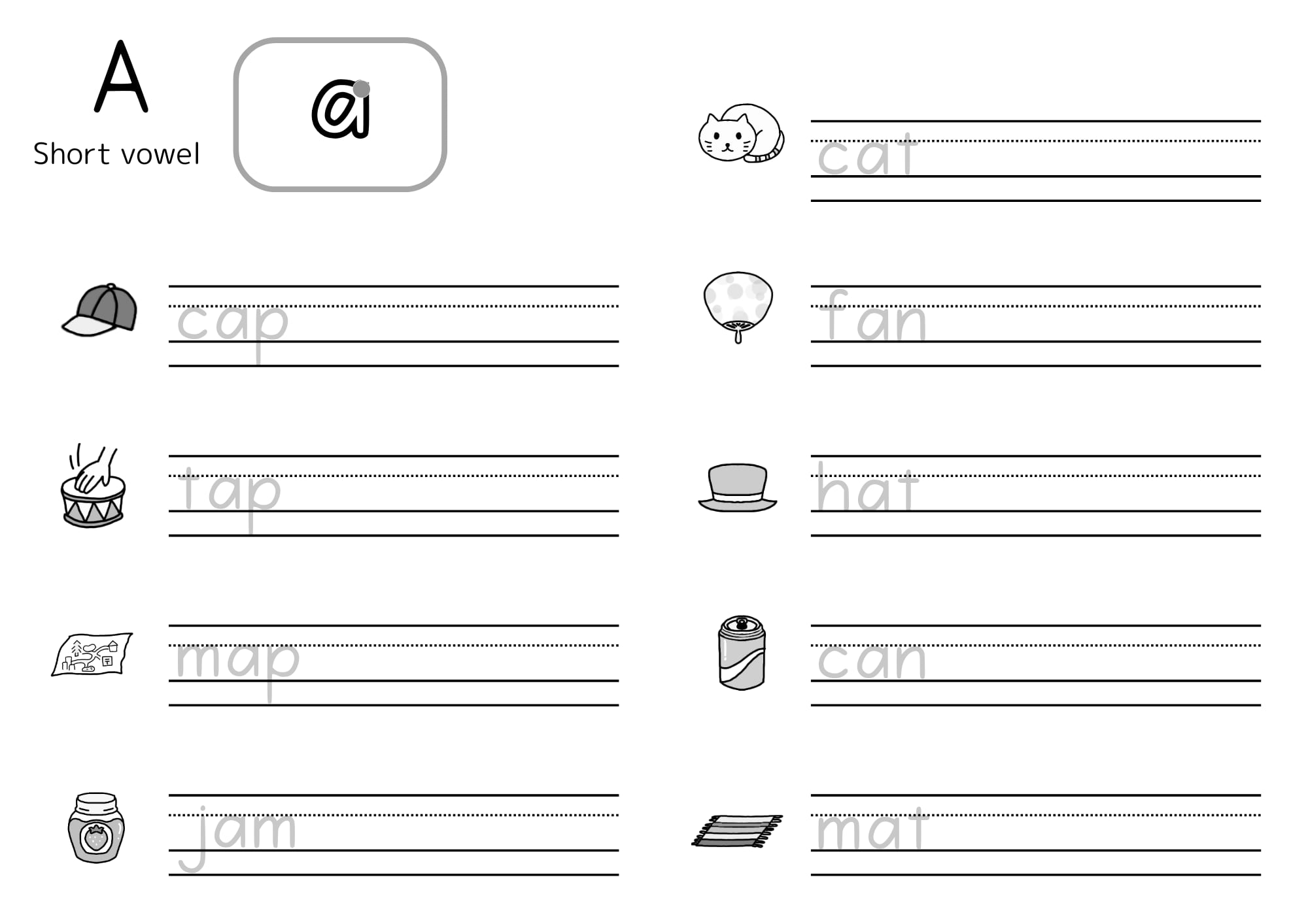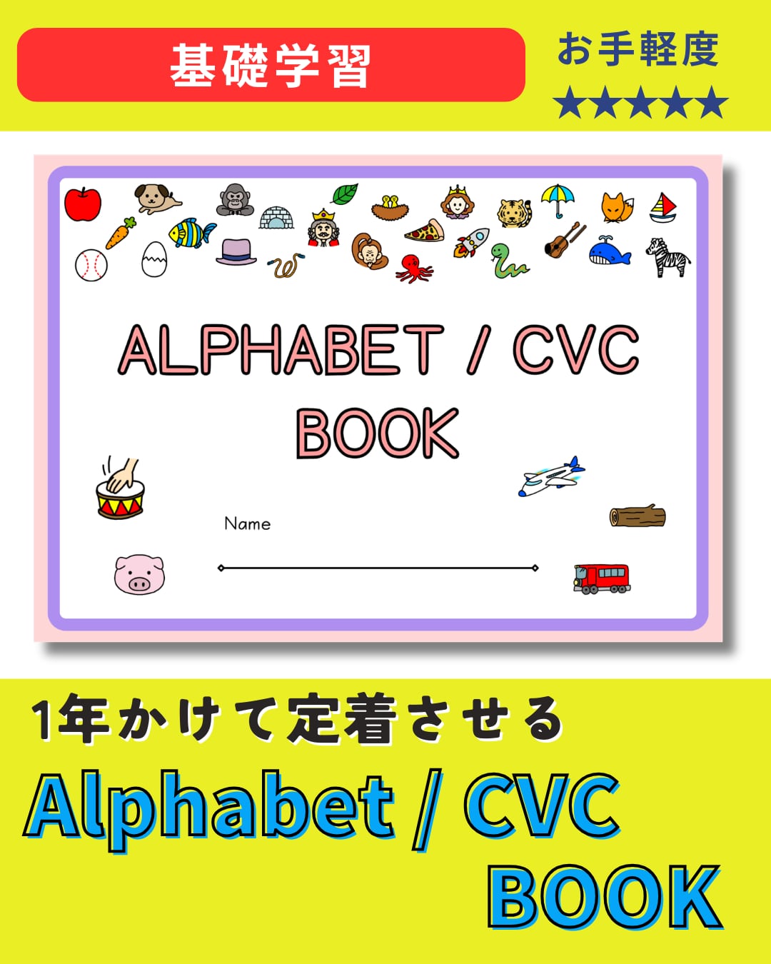 アルファベット(大文字/小文字)とCVCを楽しみながら習得するためのワークシート