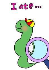 食いしん坊の蛇さんが食べた後のお腹の形を見て何を食べたか当てながら進むストーリー。
