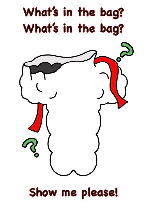 繰り返しのフレーズは What's in the bag? とShow me please! に対しての It’s 〜の答え方です。