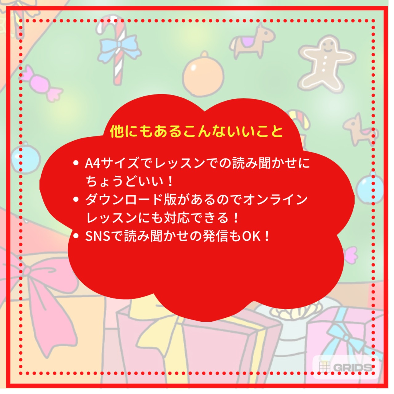 ・読み聞かせしやすいA4サイズ…小さいと読み聞かせるのも大変。大きめのサイズにしました。