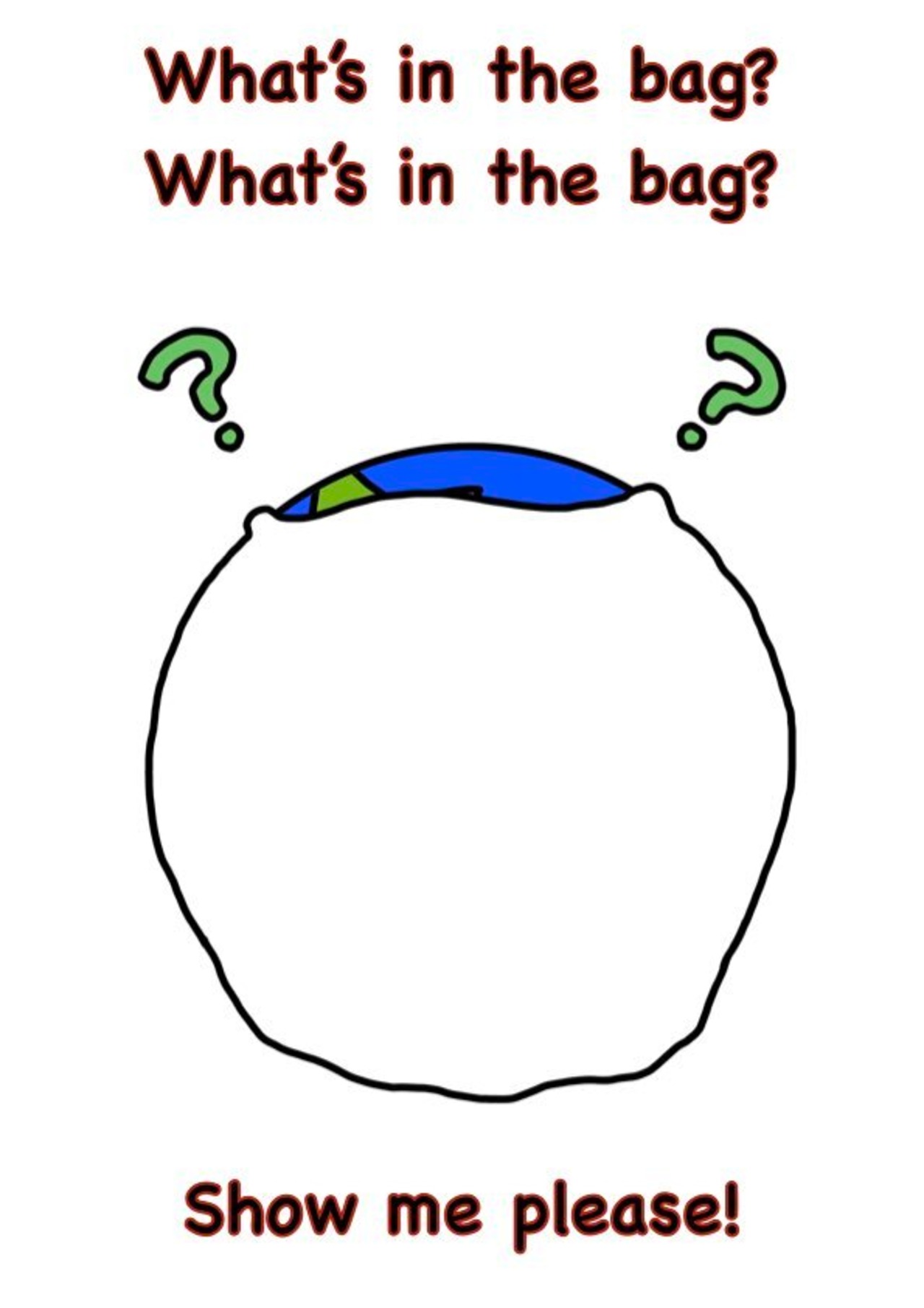 繰り返しのフレーズは What's in the bag? とShow me please! に対しての It’s 〜の答え方です。